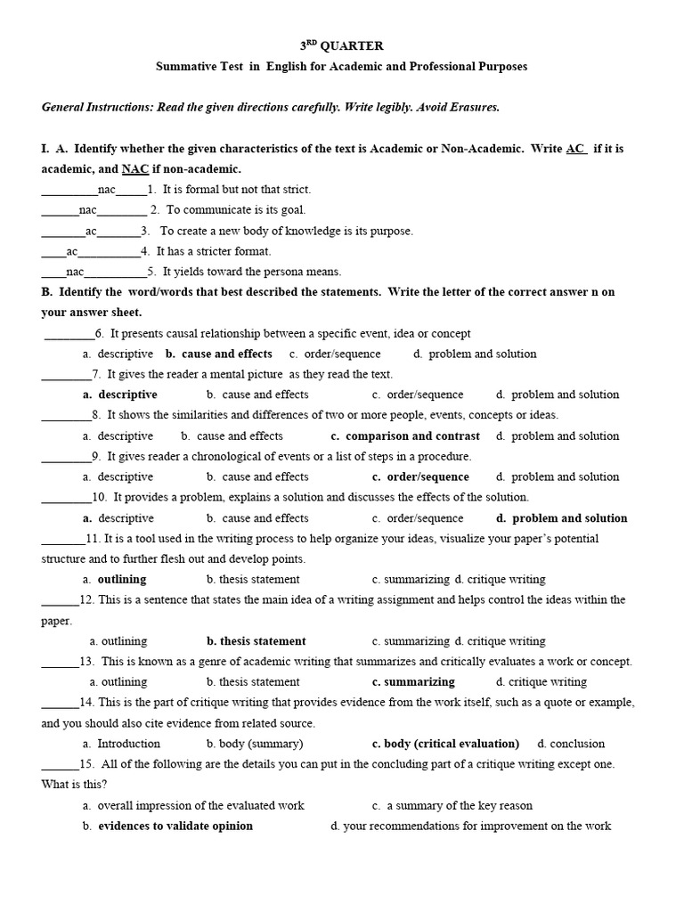 I. A. Identify whether the given characteristics of the text is Academic or Non-Academic. Write AC if it is