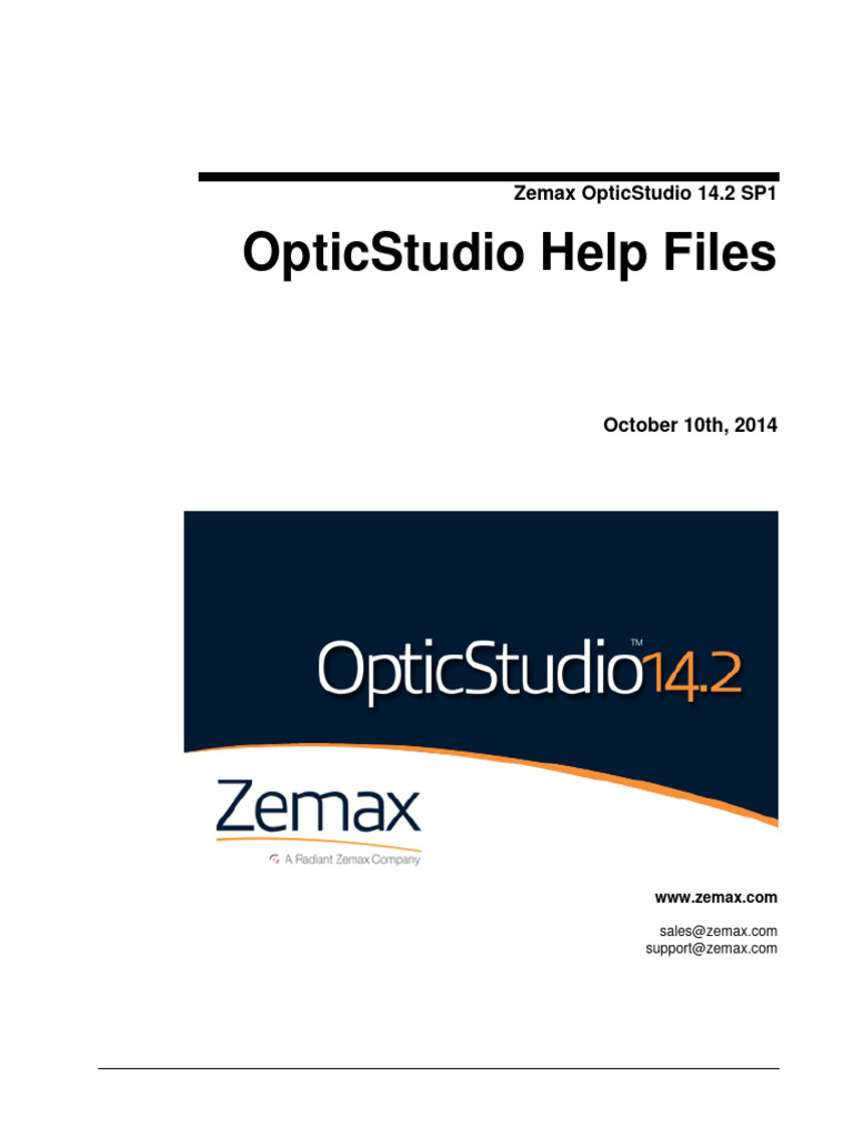 Zemax OpticStudio 14.2 SP1 OpticStudio Help Files The Help Tab 1531
