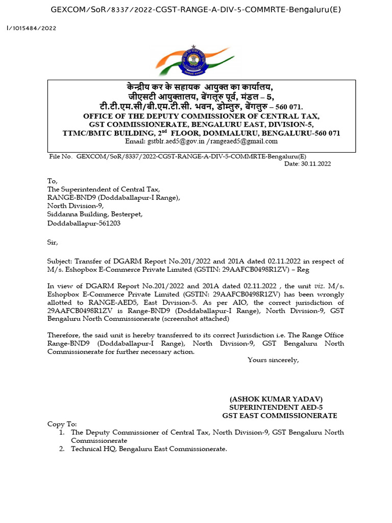 GST COMMISSIONERATE, BENGALURU EAST, DIVISION-5,