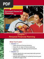 Concept of financial planning, > Steps in the financial planning process, > Building blocks of financial planning, > Importance of financial planning, > Principal of good financial planning. 2.1 Introduction You all have many financial goals in your mind. Like buying a car or the latest smart phone or wealth accumulation... You need to have an adequate amount of money to fulfil your goals and desires. Whether you have a lot of money or not enough, you still need personal financial planning. If you have enough money, planning can help you spend and invest it wisely. If your income seems inadequate, taking steps to plan your financial activities will lead to an improved lifestyle. More importantly, you need to have money at the right point in time. Everyone—including recent college graduates, single professionals, young married couples, single parents, mid-career married breadwinners, and senior corporate executives— needs to develop a personal financial plan. Knowing what you need to accomplish financially, and how You intend to do it, gives you an edge over someone who merely reacts to financial events as they unfold. For example, if you want to build up a corpus of €10 lakh for your daughter's college education through investments, you need to grow this amount by the time she turns 18. Not a year later. This is where financial planning becomes essential.12 || Personal Finance and Planning ‘The financial planning not only just about increasing savings Ge lea the expenses, planning is a lot more than that. This includes achieving your | on goals. In this chapter pe discussing about the financial planning and the steps in the financial planning process, & 2.2 Financial Planning Financial Planning is the process of meeting your goals through the proper management of your f Or we can say an fone planning is the planning which deals with money. A financial pl = a guide as you go through lifes journey: Essentially, it helps you be in control of your income, expen and investments such that you can manage your money and achieve your.goals. You need to have adequate amount of money to fulfil your goals and desires. More importantly, you need to have nin at the right point in time. Financial planning normally restricts tothe financial aspect. Financial planning is done both by individuals for their own future life and business people to know about the funds required for ft period and the sources of funds available. Whether an individual is in college getting ready to grad at the peak of his or her career, or close to retirement, everyone needs to think about their financ: future. Everyone makes financial decisions every day. Few people consider how to make better decisio toachieve a higher level of personal economic satisfaction. Financial planning is a step-by-step appro to meet one’s life goals. 23 Personal Financial Planning (Wealth Management) Personal financial planning refers to the proper planning and implementation of well coordinated pls to achieve financial objectives. The savings and investment made today should match the future goals « Taking conscientious and systematic steps towards fulfilling ones financial goals. «The process of meeting life’s goals through proper management of finances. Life goals can incu buying a home, saving for child’s education or planning for retirement. «Personal finance involves much more than managing and investing money. Italso includes snake all the pieces of your financial life fit together; it means lifting yourself out of financial ili! Like planning a vacation, managing your personal finances means forming a plan for making best use of your limited time and money. For example, purchasing a new car immediately after graduation may be an important goal fort But buying car isa major expenditure involving a large initial cash outlay and additional consume that must be repaid over time. It therefore warrants careful planning, Moreover, some dealers 2 low-interest loans but charge higher prices for their cars. Knowing all your costs in advance fond the best dea. Using personal financial planning concepts toceachall your financial gos" similar positive benefits. lee ‘There are two ways you can deal with finance in your life: 1, Without Planning wherein at some point of time in. will decide how to-use that for your ee oftime in future, peo! you will have money andt i 4 ; | 2, With Planning, you decide wel in advance what are your goals and how you wanacier eae |_ Financial Planning || 13 Financial Planning: 'S YOU more clay decision. Ithelps you to provide the Tight balance beeen eet i Financial planning will answer three important + What are your financial goals? + Where you are today in relation + How will you get from where yo ind meaning to jour financial ‘Sen your present and future lifestyle, questions: to your goals? "are today to your goals? Today, time is with you. But will you be al th ife? Wi reste ee eal ob ough out your life? Will your le to live on t r our i these questions and then think for Financial Manning." AMEE afer you rete? Answer ble to Continue at the same t{ 24 Steps in the Financial Planning Process Hyoutakea closerlook at financial planning, you'll se that th i into specific financial plans, which then helps you impleme traces alates Personal financial goals i ‘ou implement those plans through financi, i The financial planning process involves the six steps : ae 1, Understand your current financial ° i situation: In this first step of the financial planning Process, you will determine your current financial situation with regard to income, savings, living expenses, and debts. Preparing a list of current asset and debt balances and amounts spent for various items gives you a foundation for financial planning activities. This is the first step in financial Planning, as it gives you a good sense on the state of your finances and ways to improve. » Write down your financial goals: Ask yourself: ‘What are the