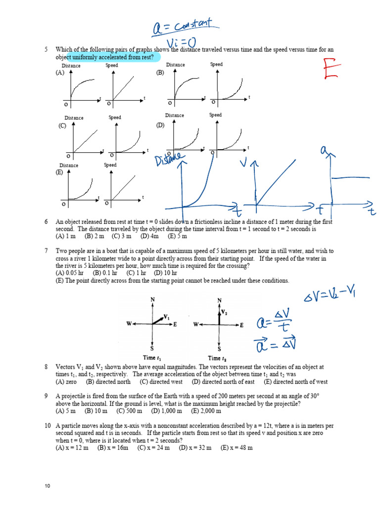 5 Which of the following pairs of graphs shows the distance traveled versus time and the speed versus time for an