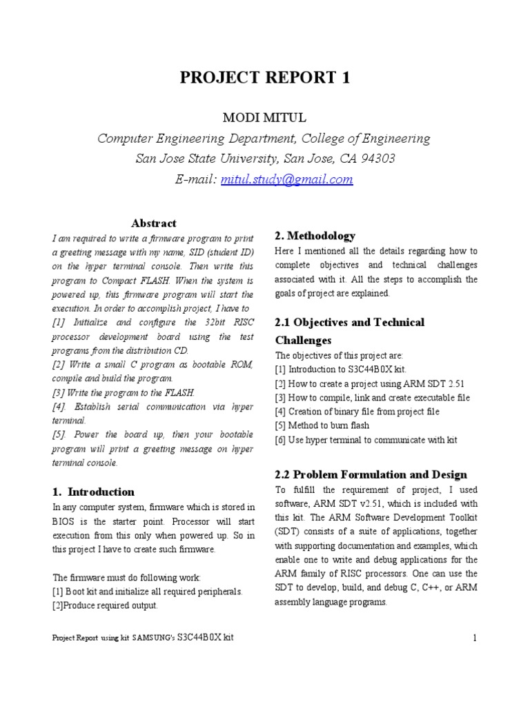 Project Report using kit SAMSUNG's S3C44B0X kit 1