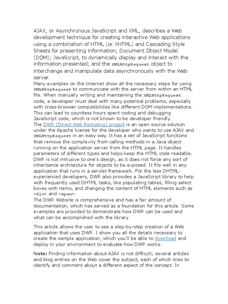 Setting up DWR for use is easy: Copy the DWR jar file to the Web