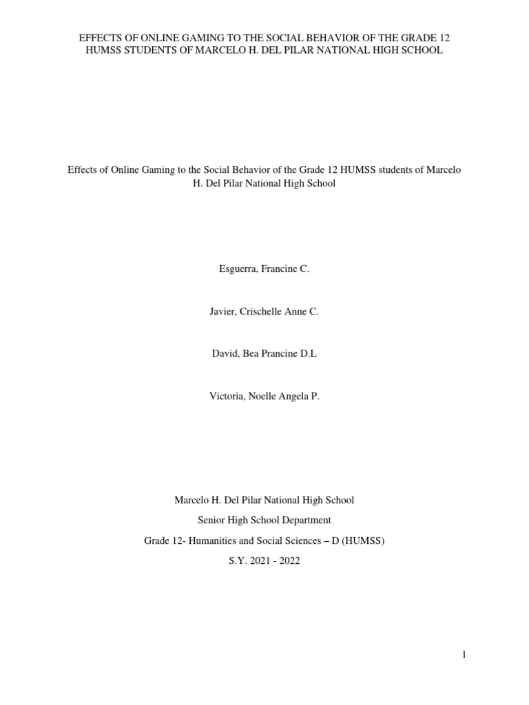 Effects of Online Gaming to the Social Behavior of the Grade 12 HUMSS students of Marcelo