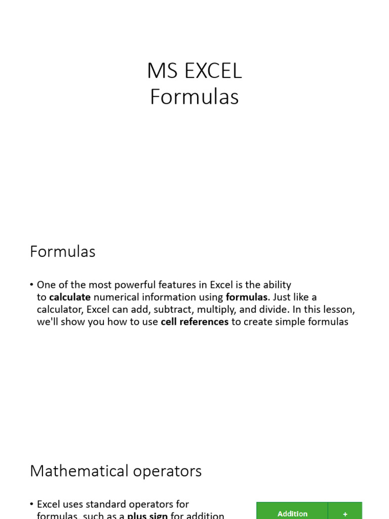 formulas in Excel. Formulas can also