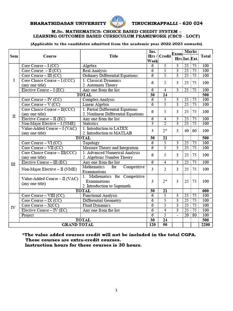 M.Sc. MATHEMATICS: CHOICE BASED CREDIT SYSTEM –