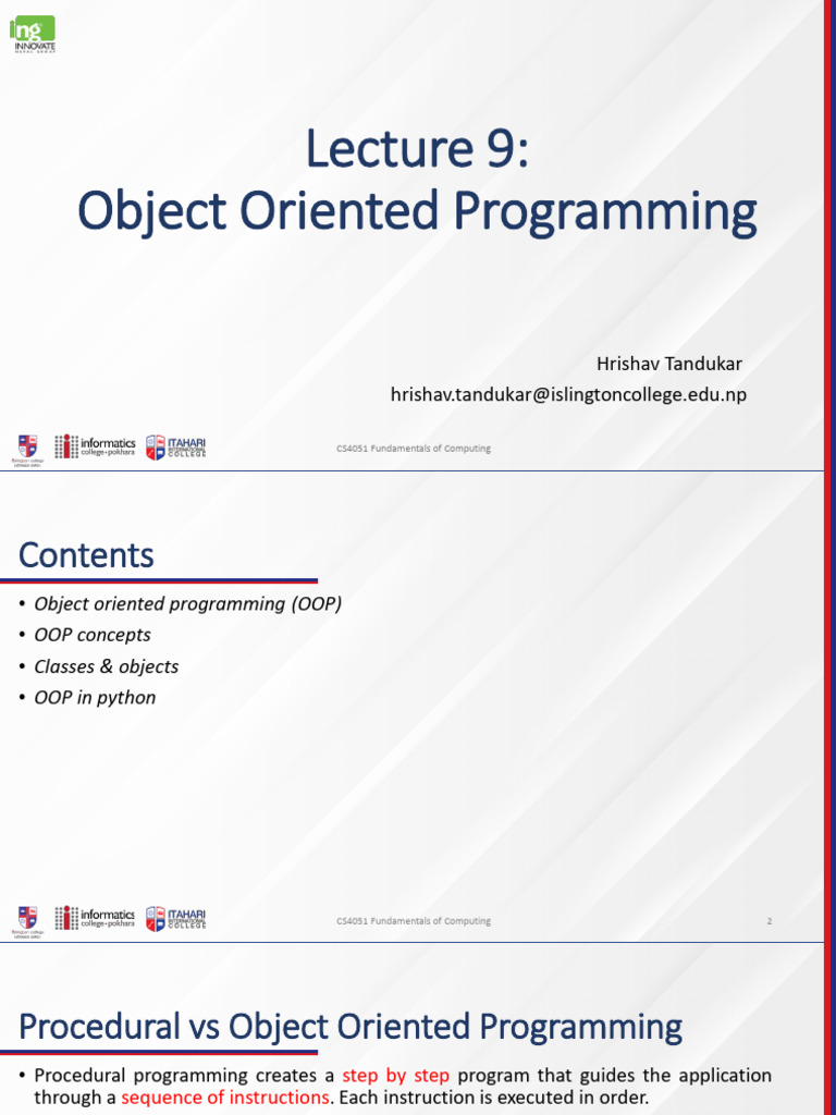 • Procedural programming also focuses on the idea that all algorithms are executed with
