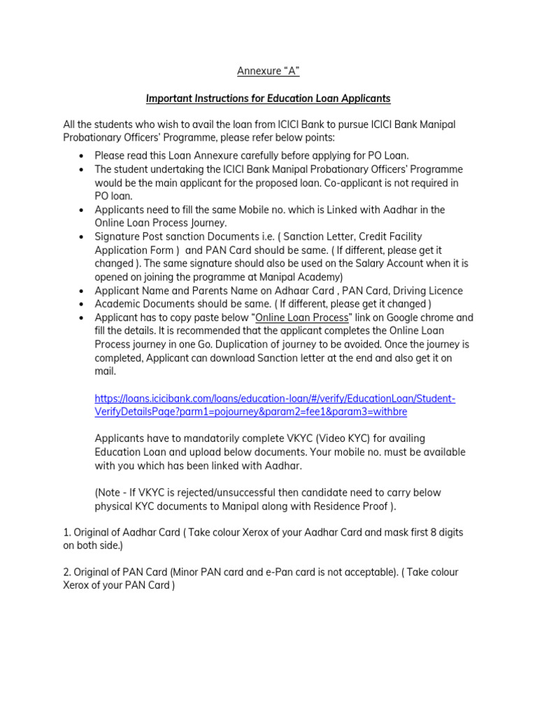 Important Instructions for Education Loan Applicants