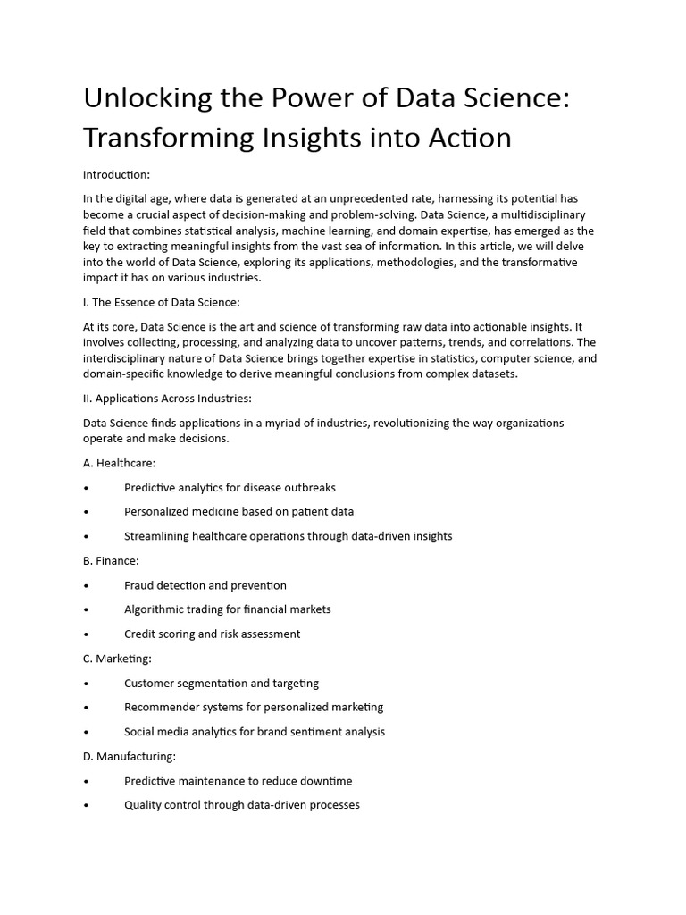 into the world of Data Science, exploring its applications, methodologies, and the transformative