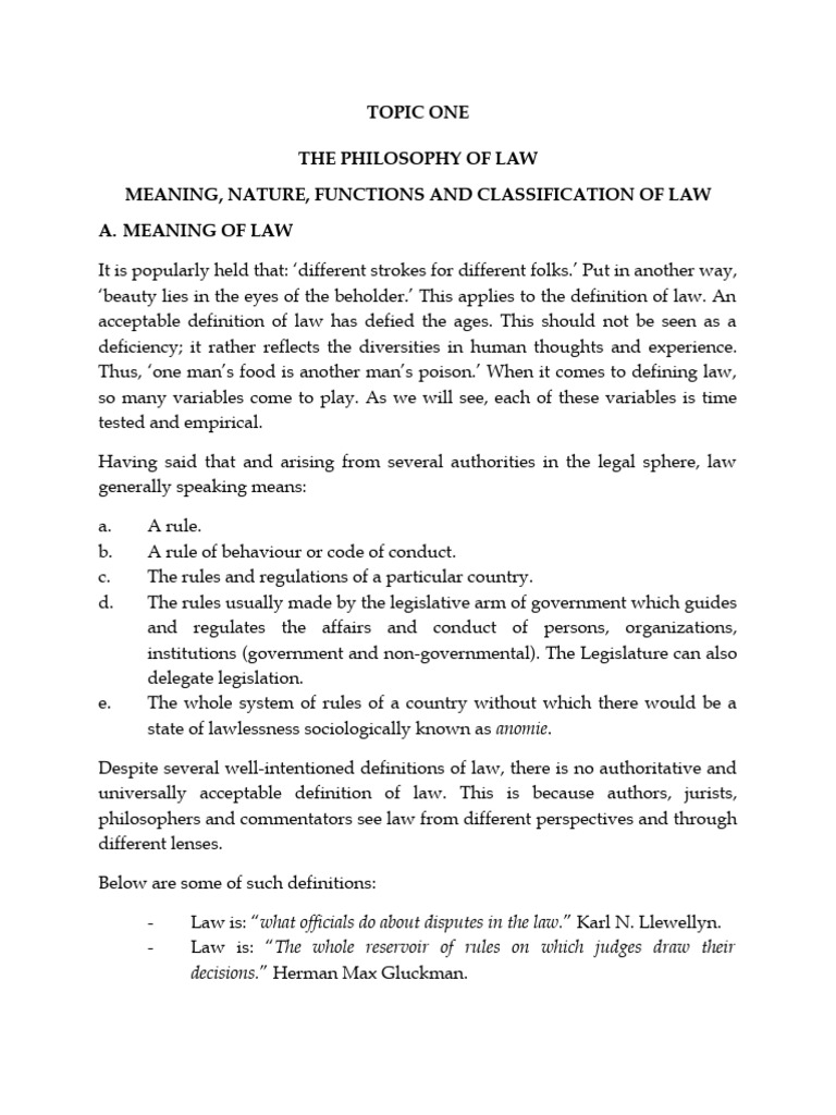MEANING, NATURE, FUNCTIONS AND CLASSIFICATION OF LAW