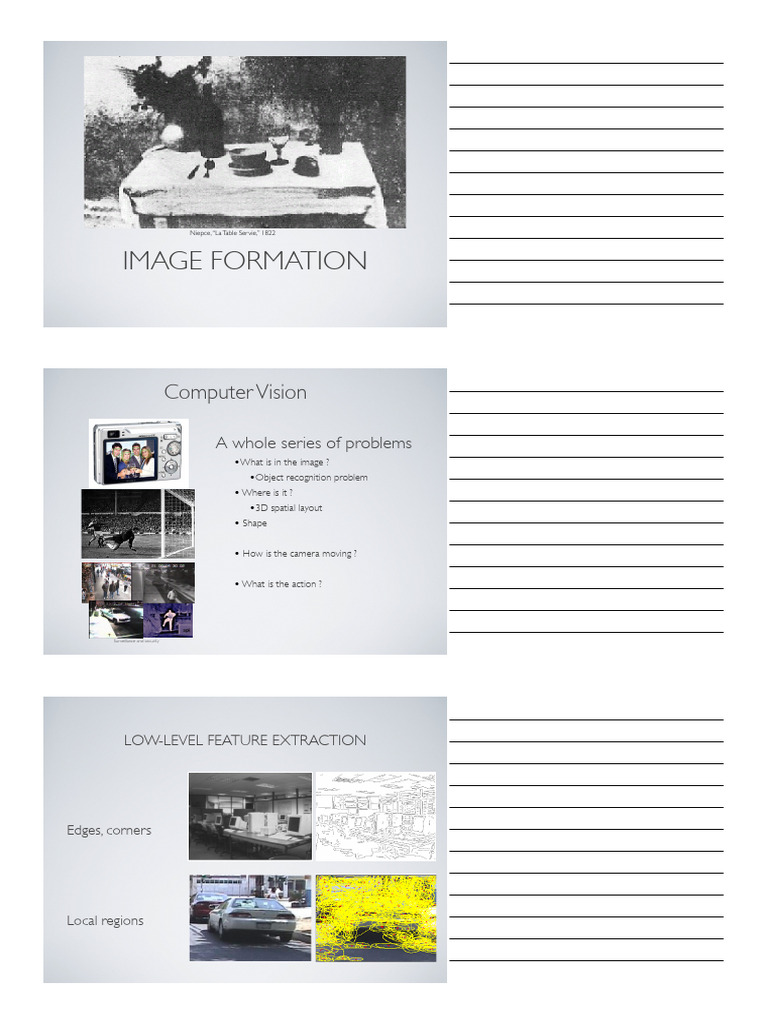 • Image formation affected by geometry, photometry, and optics.