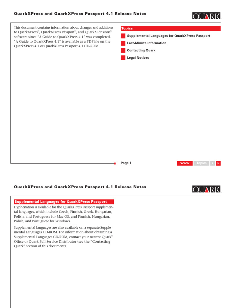 QuarkXPress and QuarkXPress Passport 4.1 Release Notes