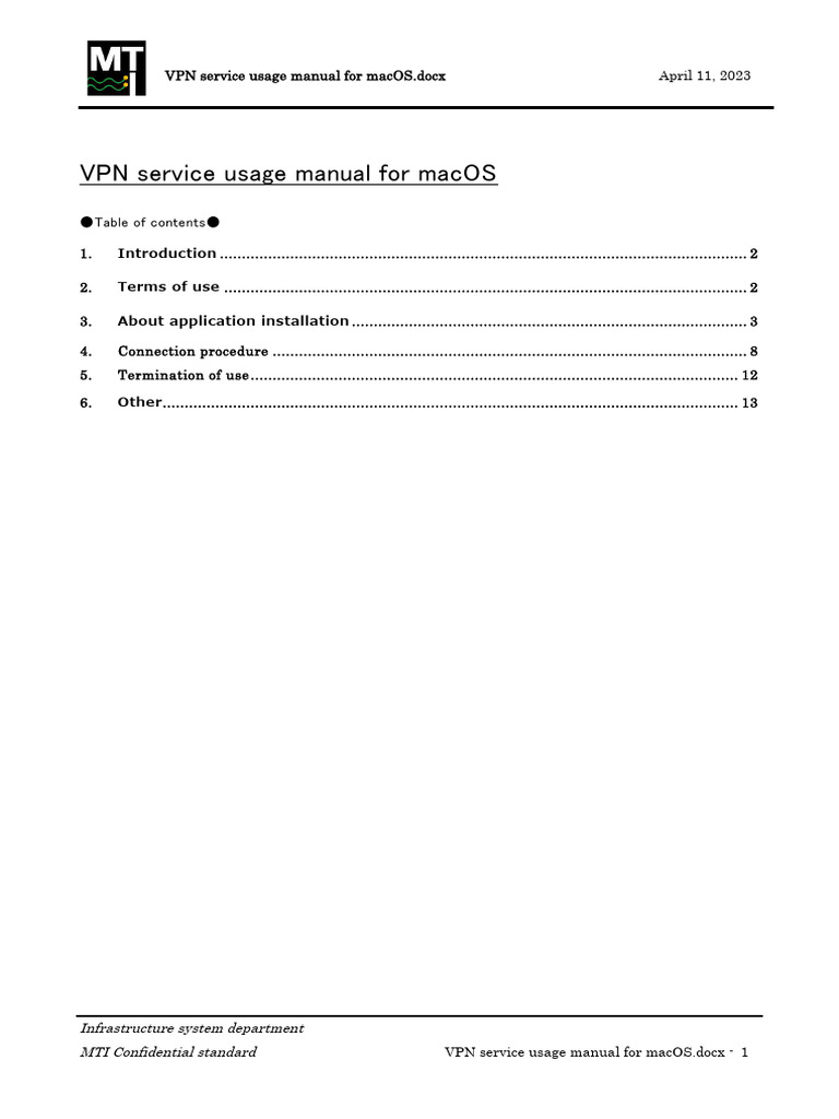MTI Confidential standard VPN service usage manual for macOS.docx - 1