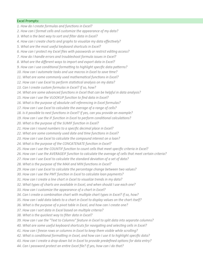 74. What are some useful functions in Excel for working with text data, such as LEFT, RIGHT, and MID?