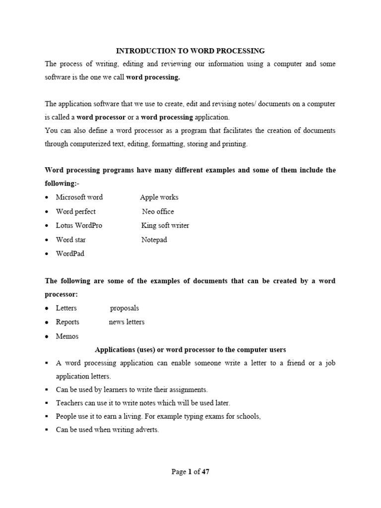 Applications (uses) or word processor to the computer users
