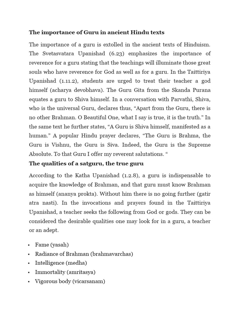 The importance of a guru is extolled in the ancient texts of Hinduism.
