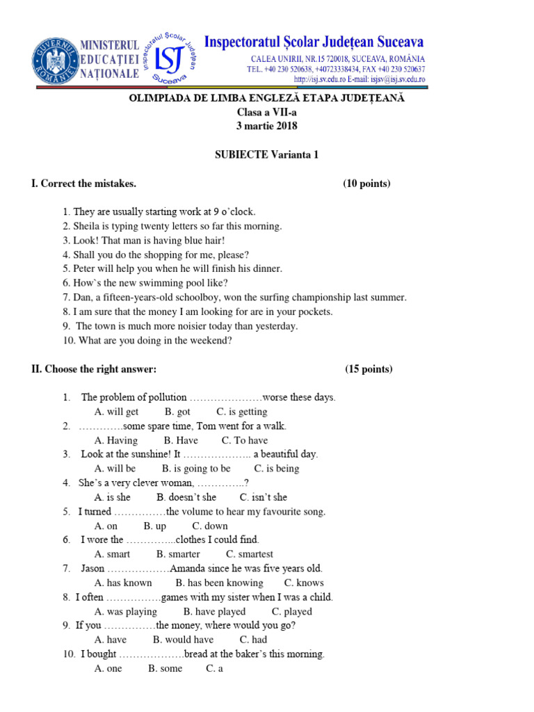 OLIMPIADA DE LIMBA ENGLEZĂ ETAPA JUDEȚEANĂ