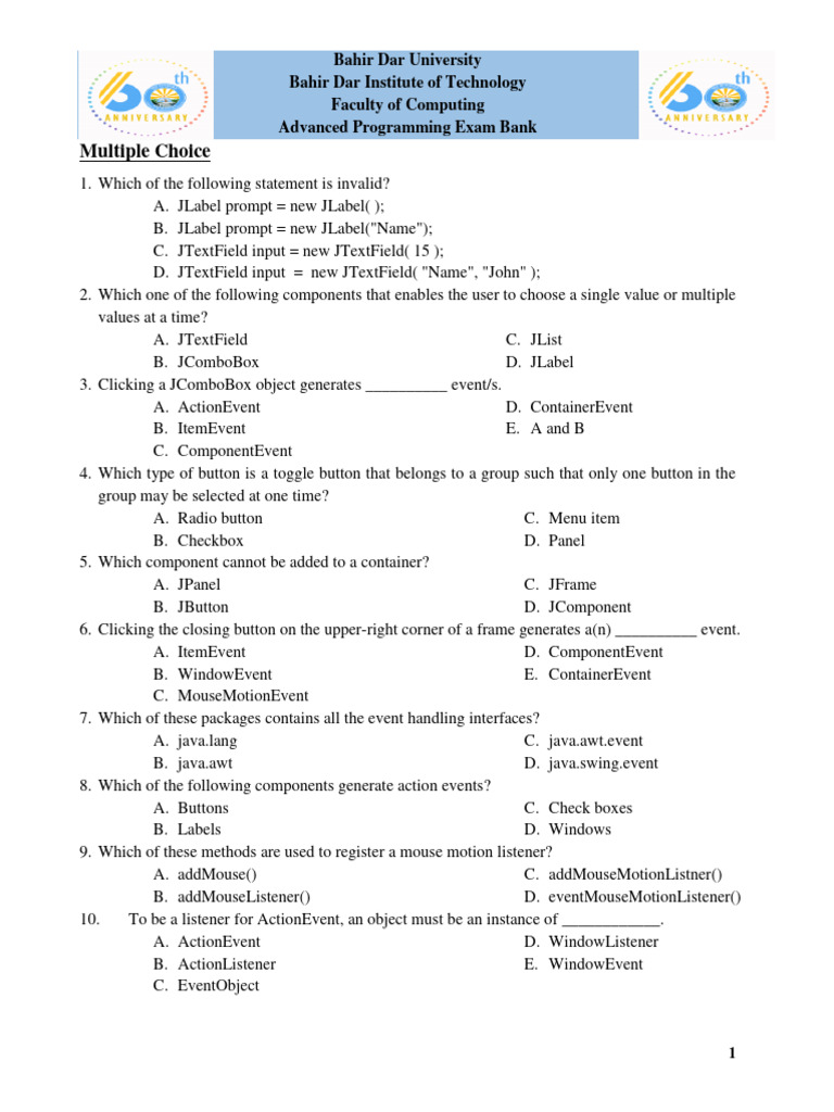 2. Which one of the following components that enables the user to choose a single value or multiple