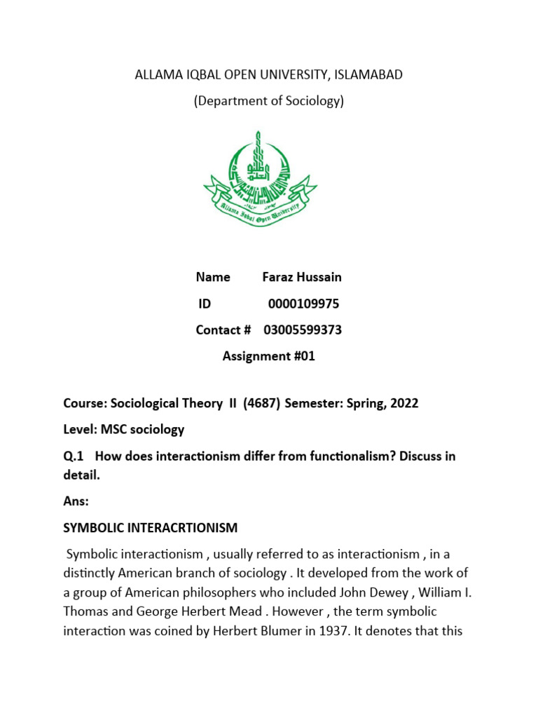 Q.1 How does interactionism differ from functionalism? Discuss in