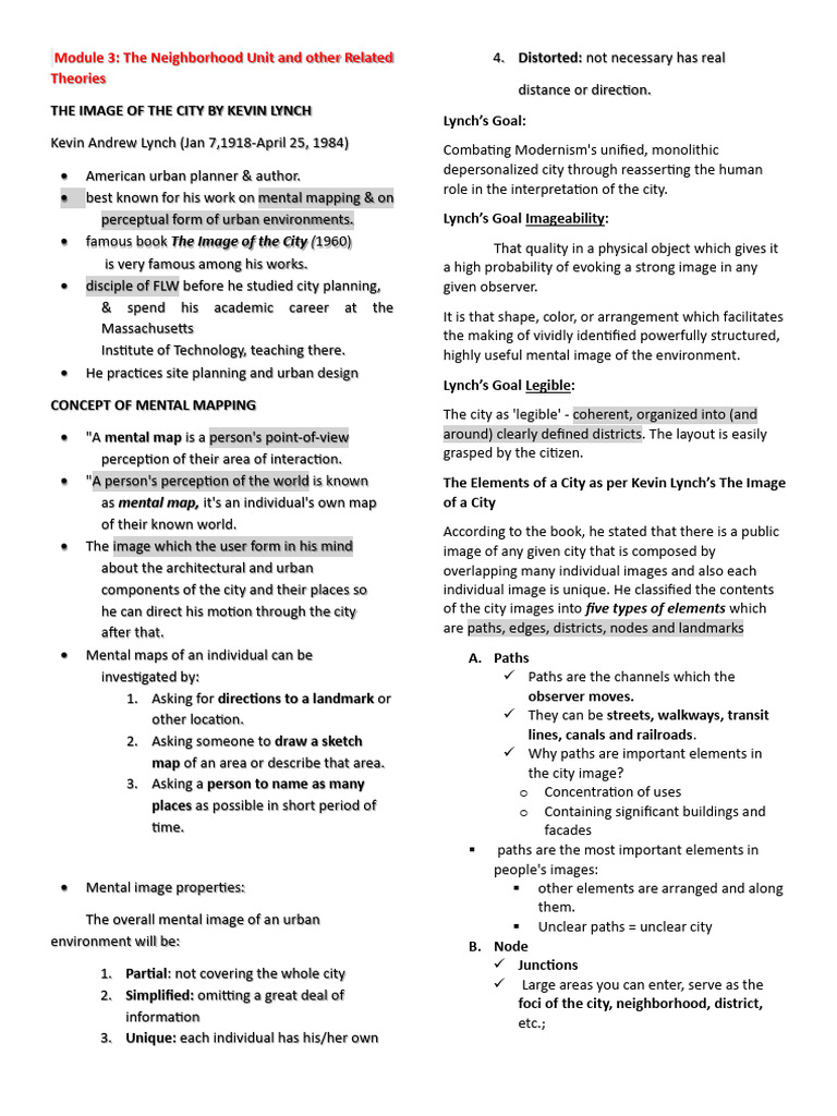 o Contrast with the surroundings • Districts are structured with nodes, defined by