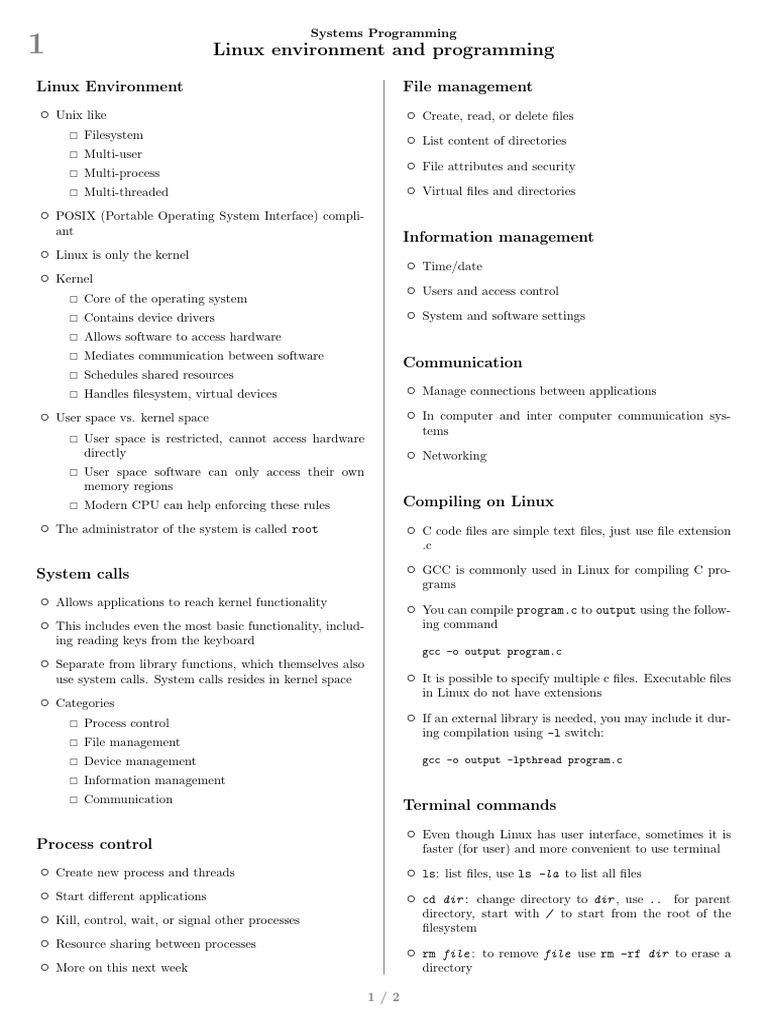 System calls ◦ GCC is commonly used in Linux for compiling C pro-