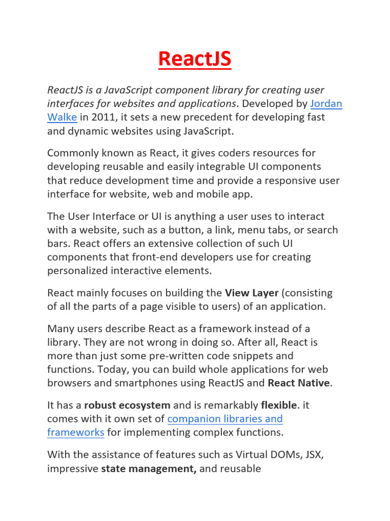 apps. There are important pros and cons of ReactJS given as