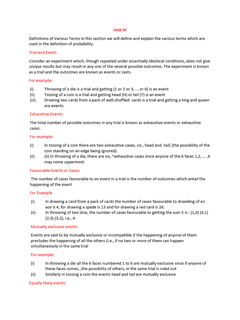 (i) In tossing an unbiased or uniform coin, head or tail are equally likely events.