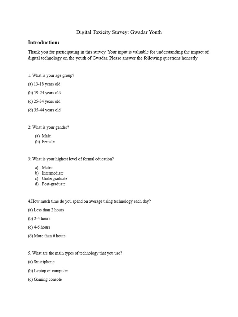 digital technology on the youth of Gwadar. Please answer the following questions honestly