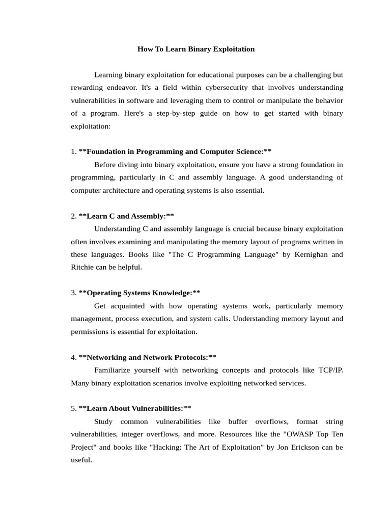 Before diving into binary exploitation, ensure you have a strong foundation in