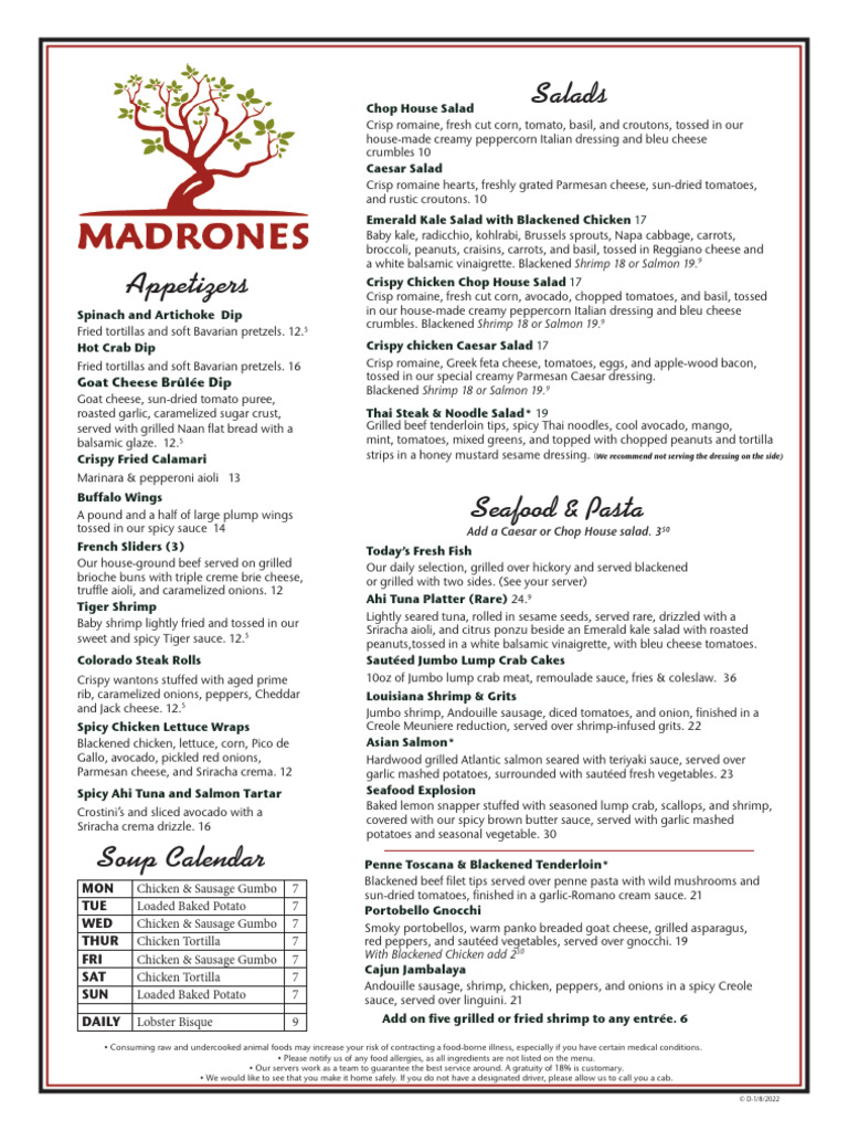 • Please notify us of any food allergies, as all ingredients are not listed on the menu.