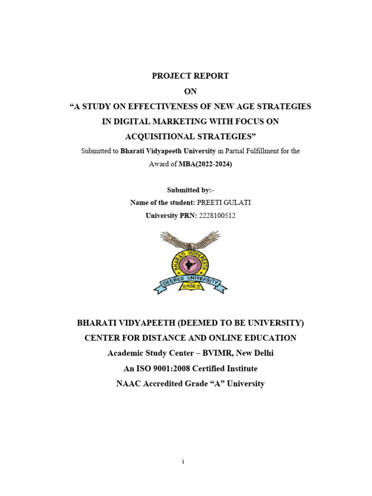 FOCUS ON ACQUISATIONAL STRATEGIES” Bharati Vidyapeeth University,School of Distance