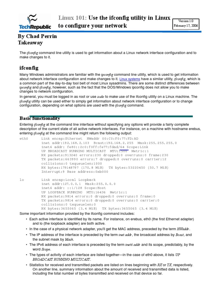 Linux 101: Use the ifconfig utility in Linux Version 1.