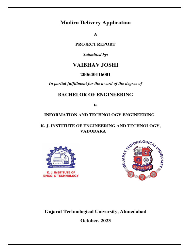 This is to certify that the project entitled “Madira Delivery Application” has been carried out by