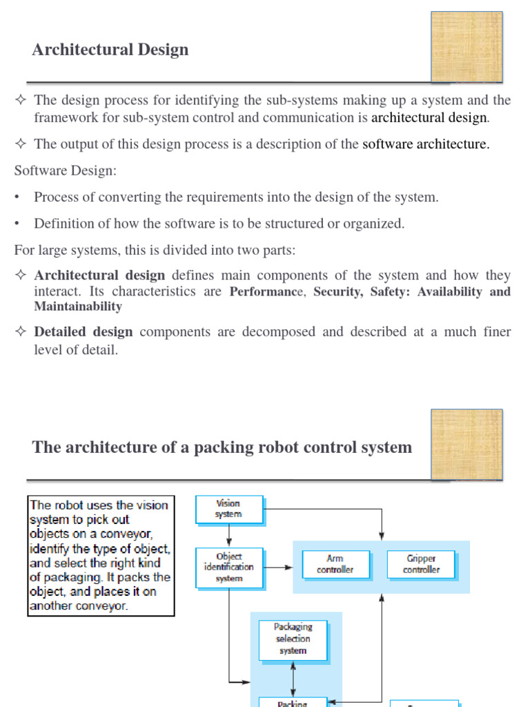 Architectural design defines main components of the system and how they