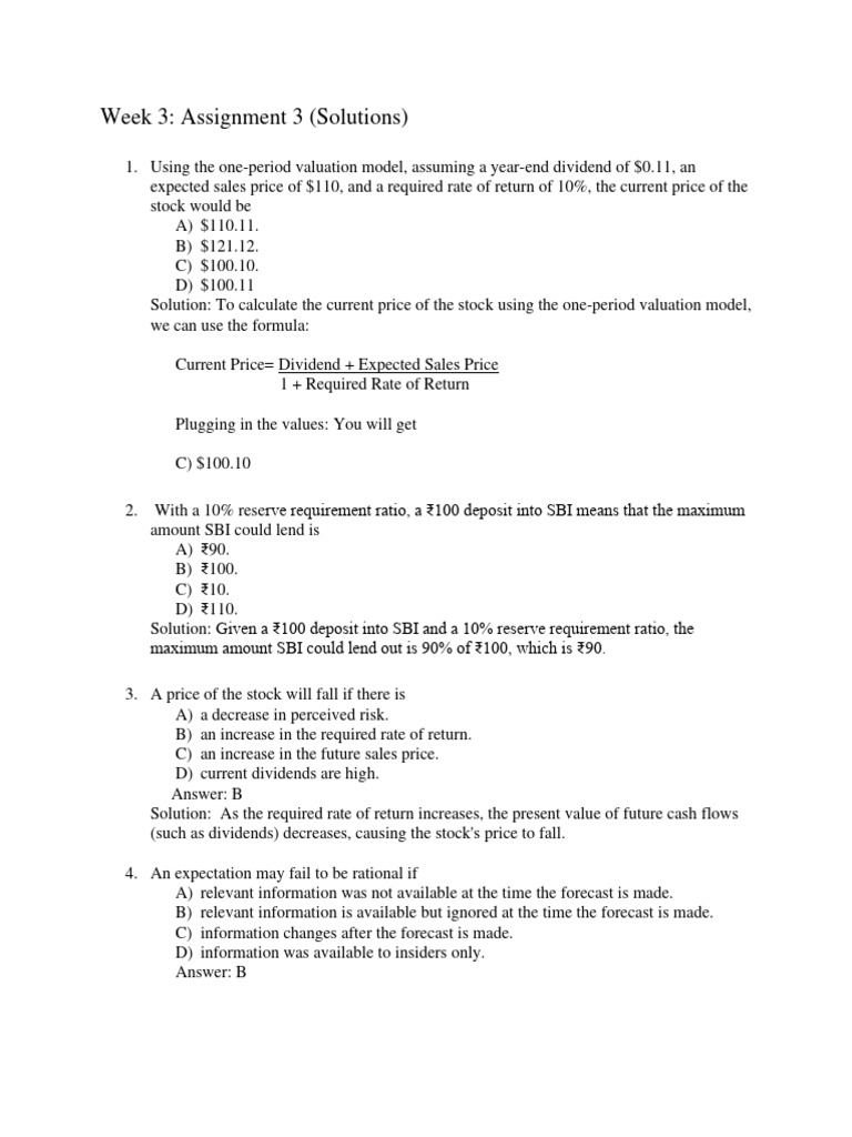 Solution: Given a ₹100 deposit into SBI and a 10% reserve requirement ratio, the