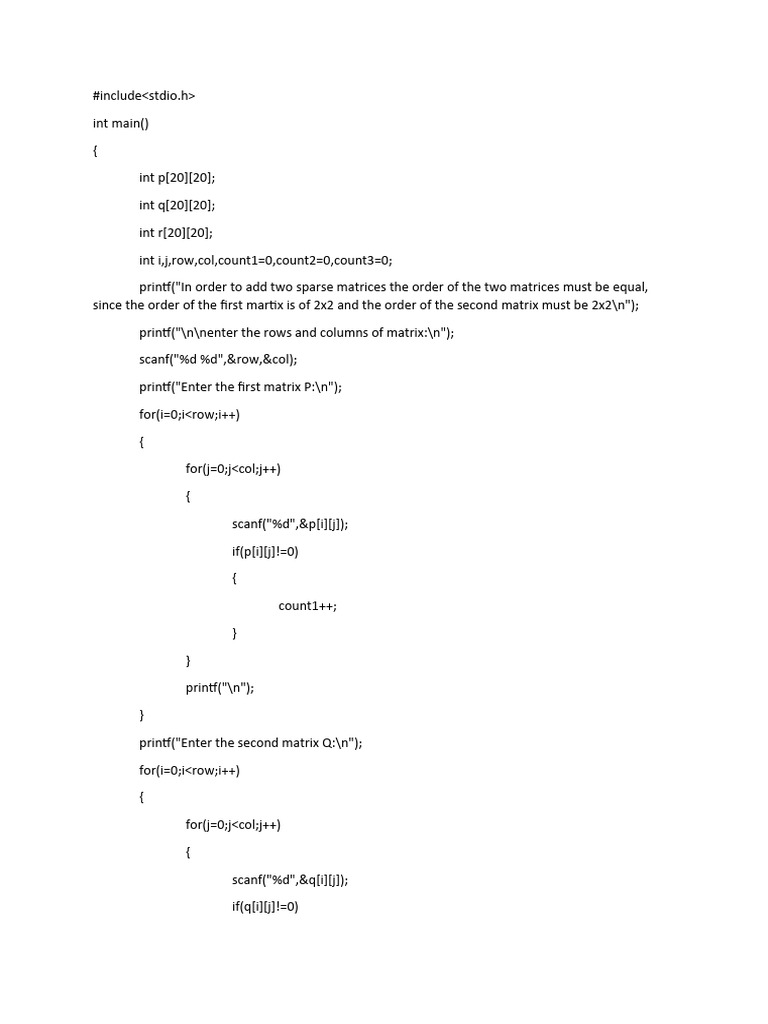 printf("In order to add two sparse matrices the order of the two matrices must be equal,