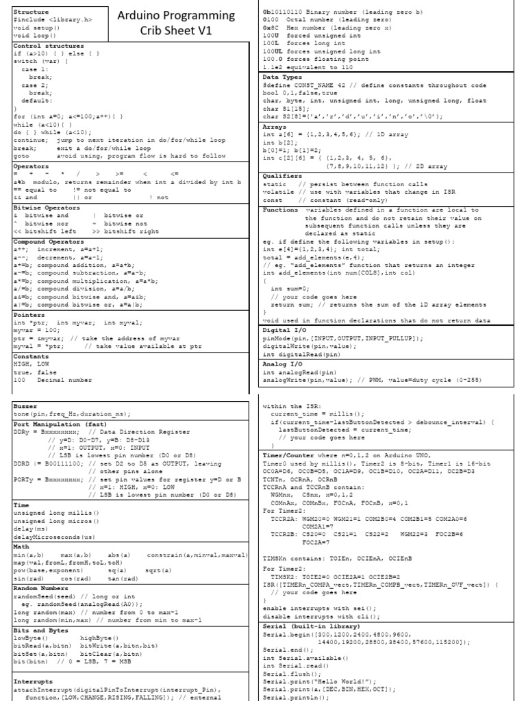 ptr = &myvar; // take the address of myvar pinMode(pin,[INPUT,OUTPUT,INPUT_PULLUP]);