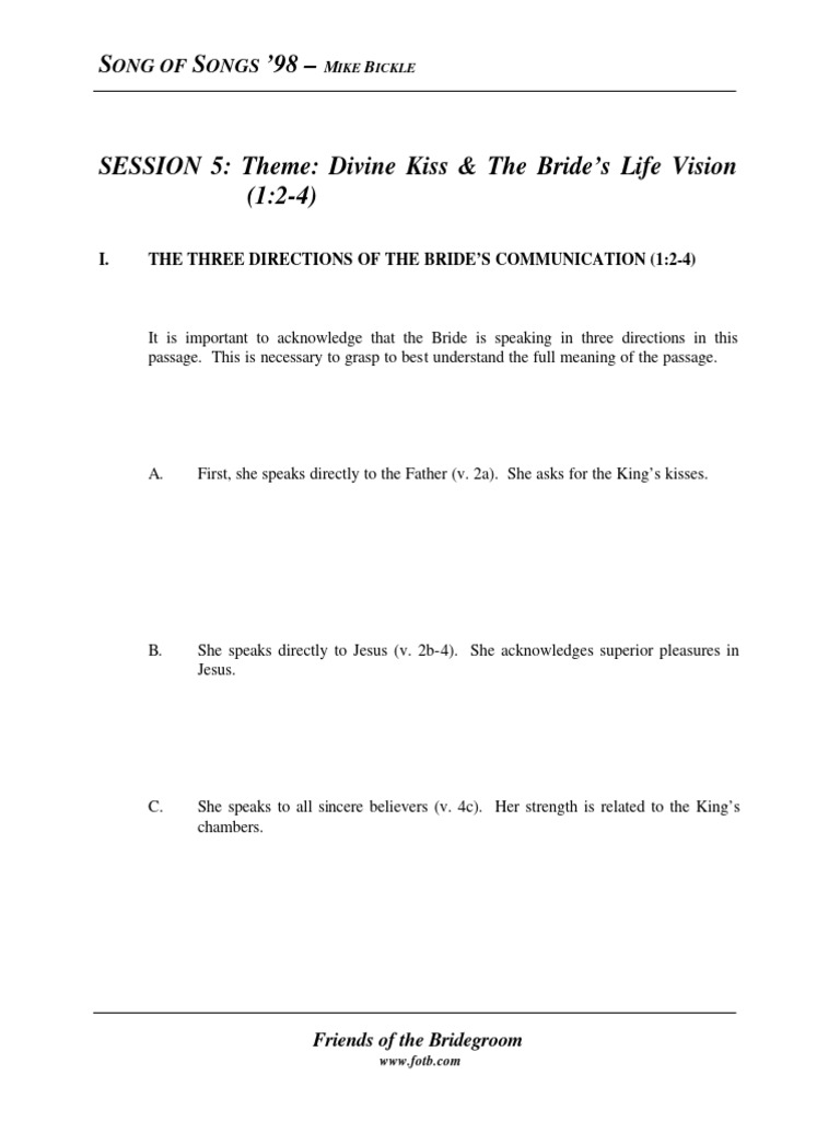 A. First, she speaks directly to the Father (v. 2a). She asks for the King’s kisses.