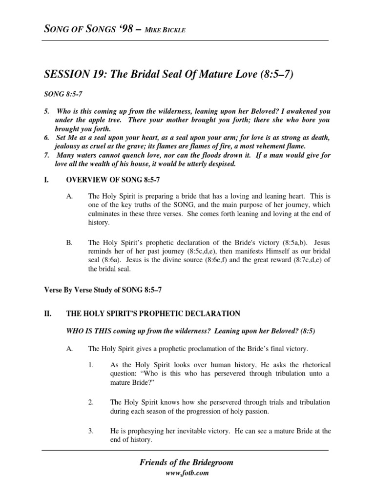 reminds her of her past journey (8:5c,d,e), then manifests Himself as our bridal