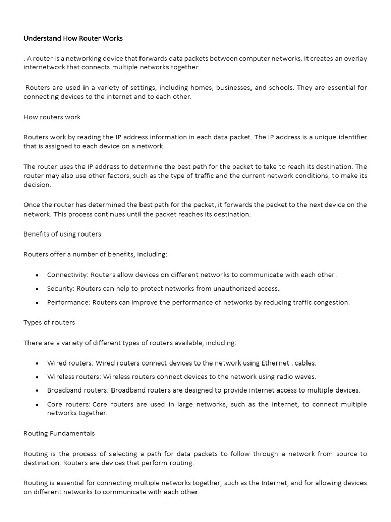 • Performance: Routers can improve the performance of networks by reducing traffic congestion.