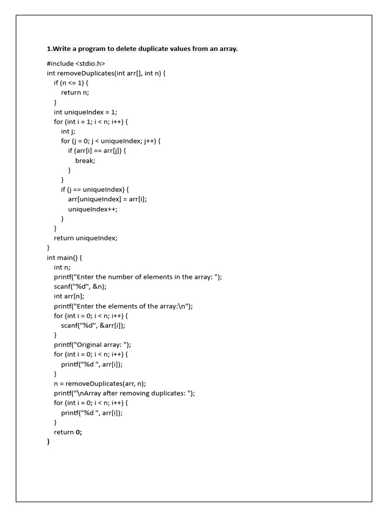 1.Write a program to delete duplicate values from an array.