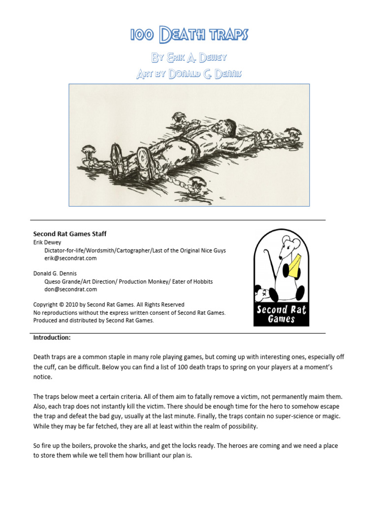 the cuff, can be difficult. Below you can find a list of 100 death traps to spring on your players at a moment’s