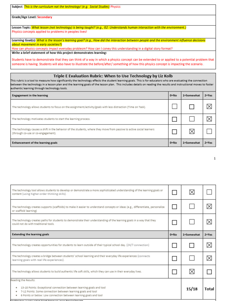 Triple E Evaluation Rubric: When to Use Technology by Liz Kolb