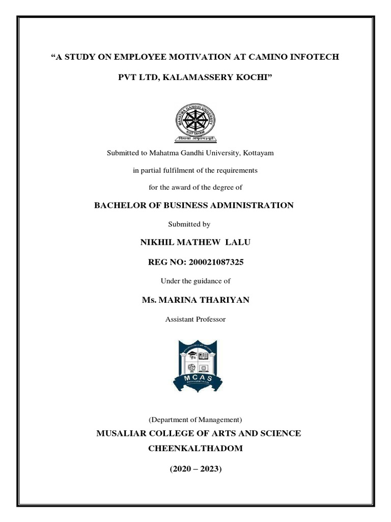 CAMINO INFOTECH PVT.LTD” submitted to the MAHATMA GANDHI UNIVERSITY in