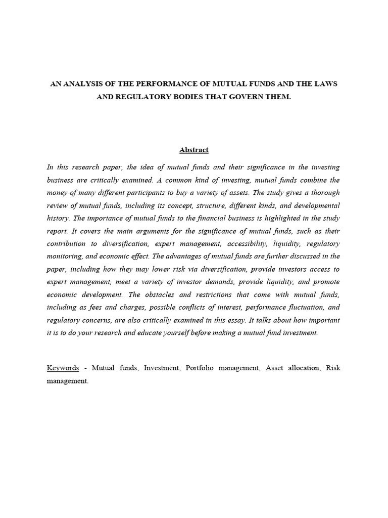 AN ANALYSIS OF THE PERFORMANCE OF MUTUAL FUNDS AND THE LAWS