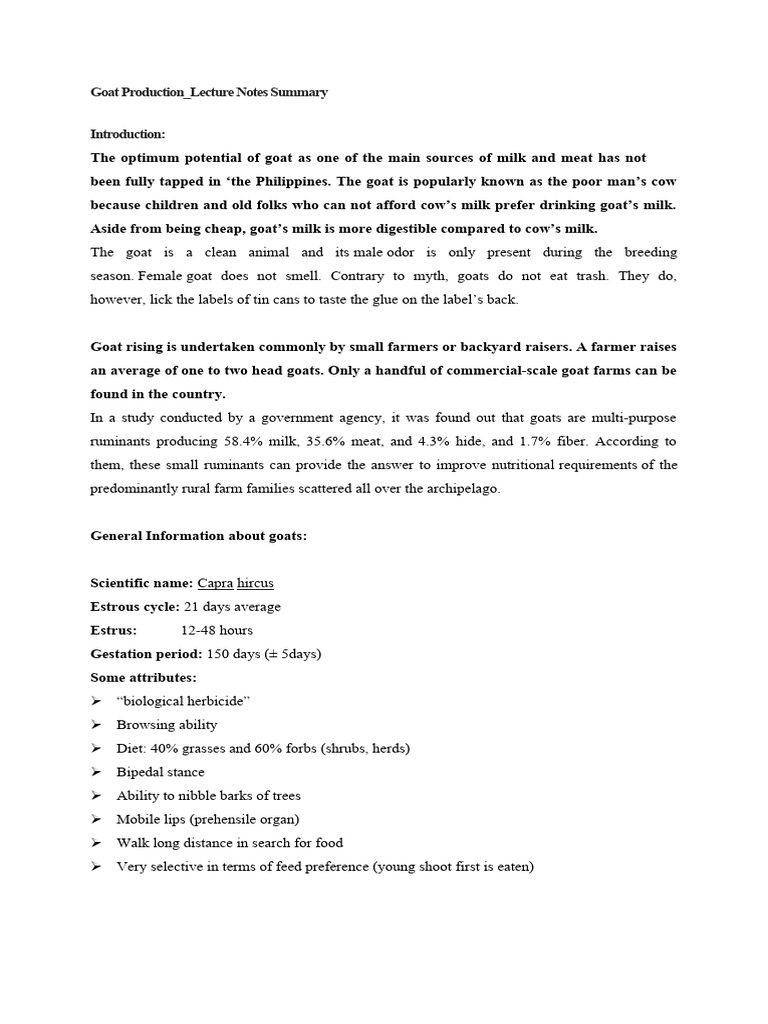 Goat Production_Lecture Notes Summary