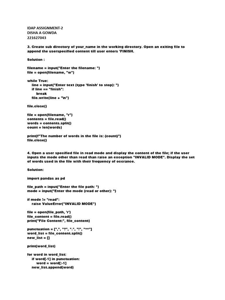 4. Open a user specified file in read mode and display the content of the file; if the user
