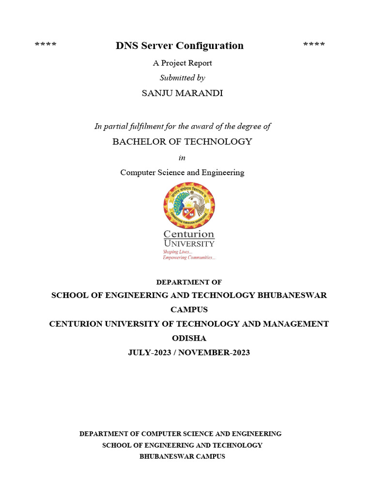 I hereby declare that the project entitled “DNS server Configuration ” submitted