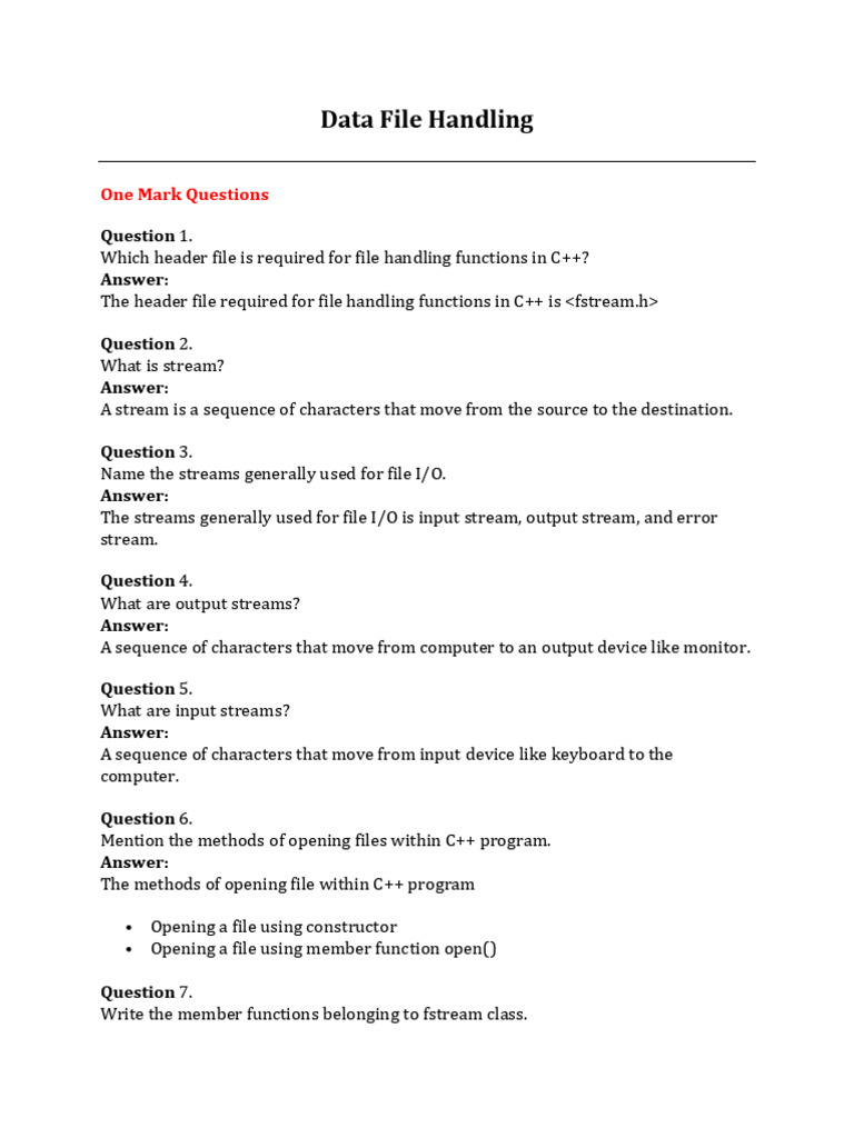 file “fstream.h”. To make use of these classes, fstream.h is included in all the