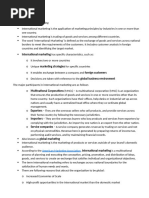 marketing, manufacturing, and other activities outside the home country. The marketing strategy